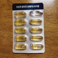 영양정보 | 1일 섭취량 : 1캡슐 (1,200 mg) 1일 섭취량 당 함량 : 열량 10 kcal, 탄수화물 0g(0%), 단백질 0g(0%), 지방 1 g(2%), 나트륨 0 mg(0%), EPA와 DHA의 합 700 mg, 비타민D 10㎍(100%), 비타민E 11 mg a-TE(100%) |